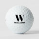 Minimalist elegant simple black custom monogram initial, letter and name, or last name personalised Titleist Pro V1 Golf Balls, available in many brand options