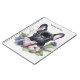 Personalised black Frenchie pug dog art notebook with a floral design in a watercolor style. Featuring purple, blue, and pink flowers and an adorable puppy. Ideal stationery for pet lovers.