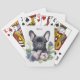 Personalised black Frenchie pug dog playing cards with a floral design in a watercolor style. Featuring purple, blue, and pink flowers and an adorable puppy. Games for pet lovers.