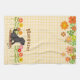 Black Labrador and Green and Many Flowers Kitchen Towel. Colourful and cute Black Labrador Retriever cartoon design with flowers. Adorable Black Labrador puppy sitting in the garden with flowers and green plants. Labrador Retriever Dog Cartoon created by Naomi Ochiai.