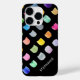 This modern iPhone case is decorated with a colourful abstract pattern on a black background.