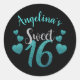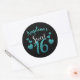 Personalised Black & Teal Glitter Sweet 16 Classic Round Sticker
