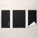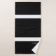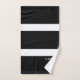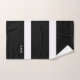 Personalised black and white bath towel set. Black with name field in block text beneath a white and grey stripe.
