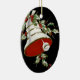 Striking red and white with gold bell on black background with green and red holly. Beautiful Vintage image. Share the Holidays with these personalised ornaments, sure to be a great conversation starter. Great christmas gift for anyone!