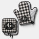 Personalised Black & White Buffalo Check Oven Mitt & Pot Holder Set