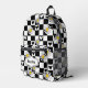 This personalised allover print backpack features a black and white chequered pattern with hearts and daisies and is perfect for school children, ensuring they carry their essentials with style and comfort. Designed for practicality, this backpack features adjustable padded shoulder straps, a spacious interior, a mesh side pocket, and an internal identification label and offers ample storage space for books, snacks, and other essentials without compromising on its lightweight structure. You can easily add your child's name by using the text template provided. This backpack makes a perfect back-to-school gift. This charming backpack will make them the envy of their classmates.