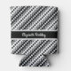 The black-and-white pattern-lover on your gift list who also loves to entertain (or party) appreciate this gift. Or maybe you just want it for yourself. The repeating patterns of diagonal rows of parallel lines interspersed and overlaid with dots - both black and white, AND split half white, half black - cover the whole surface and a band of white-bordered-black offsets your name. Change the font and sizes of all parts, too, if you like!