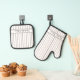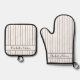 Personalised Black White Pinstripe Pattern Oven Mitt & Pot Holder Set