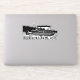 This die-cut style sticker is the perfect way to create your own boat decal to label your boating gear or make a bumper sticker to decorate your car or camper. It features an illustration of a black and white illustration of a pontoon boat on a lake with your own custom text below. Personalise this with the name of your boat or the name of your favourite lake. This sticker makes a great small gift for boat owners.