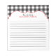 Black and white buffalo plaid or gingham plaid pattern personalised notepad. Red accents. You can personalise the name on this custom notepad. Country, western design.