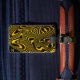 Personalised Black Yellow Gold Swirls Texture Luggage Tag