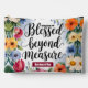 A colourful watercolor wreath of wildflowers surrounding the phrase "Blessed Beyond Measure" in beautiful, elegant bold calligraphy typography. Personalised with name.