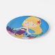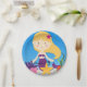 Personalised Blonde Mermaid Birthday paper plates features a pretty mermaid with blonde hair, purple mermaid tail, starfish, sea weed, blue ocean, and an area you can personalise with the birthday girl's name and age!