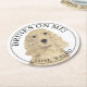Personalised Blonde Tan Cocker Spaniel Dog Wedding Round Paper Coaster