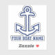 This die-cut style sticker is the perfect way to create your own boat decal to label your boating gear or make a bumper sticker to decorate your car or camper. It features an illustration of a simple ship's anchor in navy blue and white with your own text in matching navy blue below. Personalise this with the name of your boat or the name of your favourite lake. This sticker makes a great small gift for boat owners.