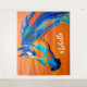Blue and Orange Abstract Horse Art Tapestry - Personalise with a name or any text that you wish to add.