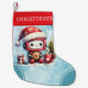 Create a unique personalised Christmas stocking with a cute robot illustration designed in snowy blue and red colours. The template makes it easy to type any name.