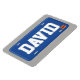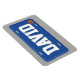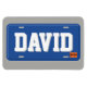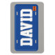 Create the perfect gift for newly licensed drivers and car enthusiasts with this easy to customise license plate. This design features a blue license plate with white letters and a small orange registration sticker in the corner. Use the template field to fill in your own name.