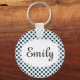 Cute personalised white keychain with navy blue polka dots.  Add your name or initials / monogram to make it your own.