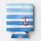 A nautical theme can cooler that can easily be personalised for family reunions, weddings or any event that calls for remembering. The red anchor and medium blue stripes are part of the design but The background colour, text colour and style can be customised to coordinate with an individual colour scheme. Easy to personalise for any event. Design by Night Owl's Menagerie, 2021.
