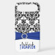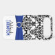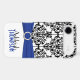 Personalised Blue, Black, White Damask Case-Mate iPhone Case