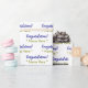 The design features customisable typography fields for a personalised wish, which currently reads "Congratulations!" and name or other personalisation - presented in an elegant, minimalist pattern in navy blue and gold font colours against a soft white background colour. The personalised wrapping paper is suitable for all holidays and occasions to celebrate successes and accomplishments of the people in your life to mark their graduations, new jobs, recent promotions at work, retirements, new home, new baby, weddings, engagements, wedding anniversaries, and any other.