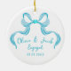 Personalised Blue Coquette Bow Engaged Ceramic Tree Decoration