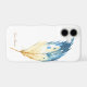 Simple watercolor artwork of blue feather. Personalise it with your name.