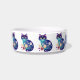 Watercolor blue and d pink floral kitty cat personalised cat bowl.