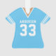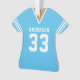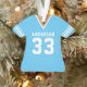 Celebrate your football star with this personalised blue football jersey ornament. Perfect for commemorating a special season, player, or team. Customise it with a name and number to create a unique keepsake.