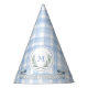 Personalised Blue Gingham Laurel Crest Birthday with a monogram initial and short banner text.