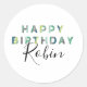 Personalised Blue Green Letters Happy Birthday Classic Round Sticker