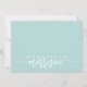 A chic personalised stationery flat note card featuring your name in a white brush script with decorative swashes on a blue green background. Modern simple elegance.