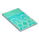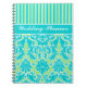 This customisable turquoise blue, green, and white stripes with damask wedding planner notebook has a template box add your own text. If you need help customising this item, please email niteowlstudio@gmail.com for assistance.