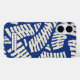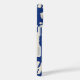 Blue leaf illustration personalised iPhone case. Leaf pattern on a blue background with text name field at bottom centre.