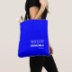 Personalised Blue NOUVEAU MINIMO Tote Bag with CUSTOMIZABLE TEXT. Modern custom minimalist ELECTRIC BLUE tote bag, with text that reads NOUVEAU MINIMO, which is a mash-up of French and Spanish, and loosely translates as 'new minimalist' and refers to a new way of thinking after a pandemic pivot. Underneath there is a placeholder name. All text is customisable so you can change as required and add your own wording. Text is right justified. Design is repeated on the back. Comes in other colours.