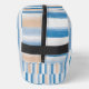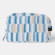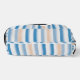 Stylish toiletry bag with modern blue and peach watercolor stripes. Personalise with your name for a unique travel, bathroom, or makeup organiser.