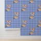 This wallpaper features a floppy, stuffed, calico rabbit playing w/a set of felt alphabet blocks against a Serenity Blue plaid background. Coordinates w/all designs & products in HoMeArts' "Blue Plaid Nursery Art" series.