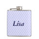 The perfect flask for those looking for something truly unique. This flask fits perfectly in your pocket or purse. Flasks make awesome gifts for any occasion...or for yourself! Perfect for bridesmaids, groomsmen, work friends, birthday presents, guys gifts, women gifts, stocking stuffers, and much more! Add your name in the field provided. Change font style, size, and colour. If you want it without a name be sure to clear the text.