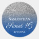 Personalised Blue Silver Ombre Glitter Sweet 16 Classic Round Sticker