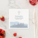 A stylish design featuring a woodland and mountain scene in blue watercolor. Personalise with your son or daughter's name and the date of confirmation. The muted scene in shades of blue, make this an excellent choice for both boys or girls.