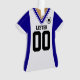 Personalise this fun little blue and white soccer jersey ornament by changing the name & number. The perfect gift for any soccer fan or soccer player.