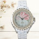 A refined floral timepiece designed to celebrate meaningful moments with quiet elegance. This women’s rhinestone watch features a soft blush peony watercolor dial, delicately layered to create depth and serenity, and finished with a personalised monogram for a bespoke touch.