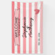 Personalised blush pink with white striped love wedding welcome. The design features a ombre blush pink with white striped pattern, the bride's and groom's names, the date and a pink heart and the text "welcome".