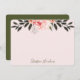 Personalised Blush Pink Watercolor Modern Greenery Note Card. Space for your personalised name in a custom classic modern script font.