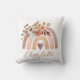 A cute watercolor boho style rust and terracotta rainbow nursery pillow with baby's name. Floral rainbow.