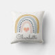 Boho watercolor Rainbow with hearts throw pillow with a whimsical script typeface for a baby nursery or young toddler child's bedroom. Pastel pink blue colours and hearts.