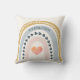 Boho watercolor Rainbow with hearts throw pillow for a baby nursery or young child's bedroom. Pastel watercolor brush lavender, light terracotta and stacked pink hearts from small to large.