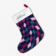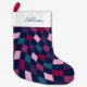 Personalised Bold Chequered Pattern Christmas Stocking. Colours in blue, teal, purple, and pinks. Personalise the template with your name.