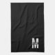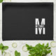 featuring personalised monogram in white bold modern sans serif font style with box of name in the middle of monogram on black background.